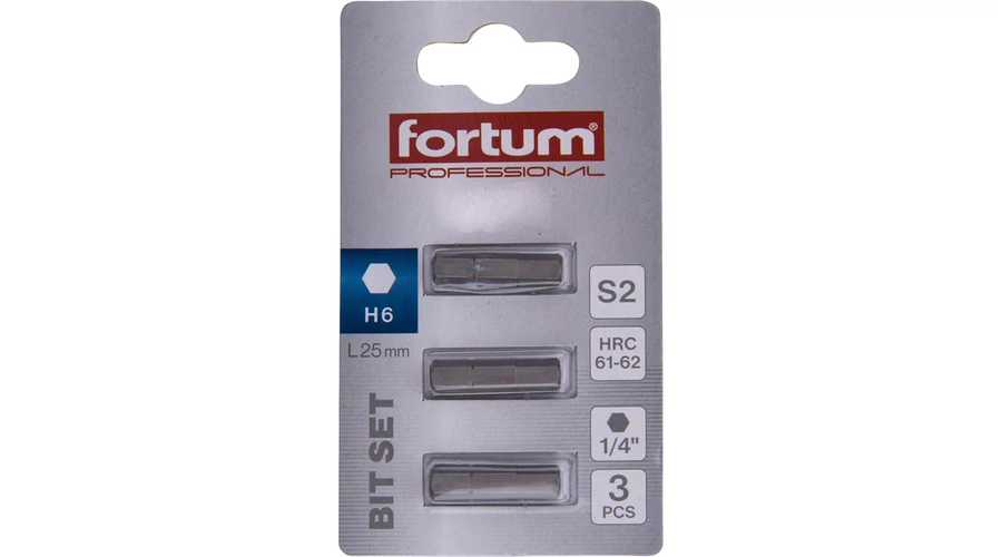 Fortum behajtóhegy HEX, 3 db, S2 acél; H 6×25mm, bliszteren (4741508)