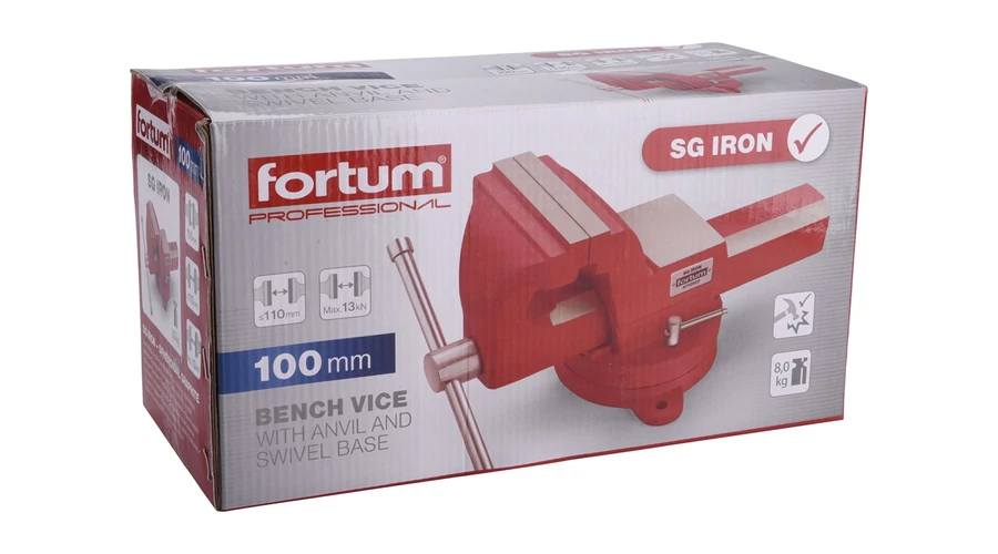 Ez a professzionális, nagy szorítóerejű forgatható satu, SG acélötvözetből készült: Ami egy magasabb ötvözetű acél a szokásosnál. A pofák forgása könnyű és egyenletes. HRC 50-54 keménységű pofákkal van felszerelve, ami nagy szilárdságot és tartósságot biztosít. Ideális eszköz különféle műhelyfeladatokhoz, minden napi munkára.