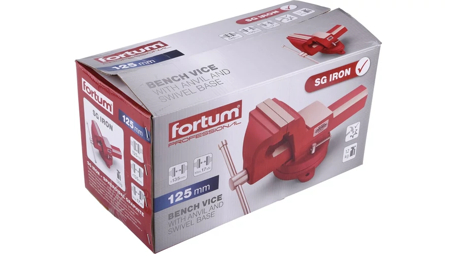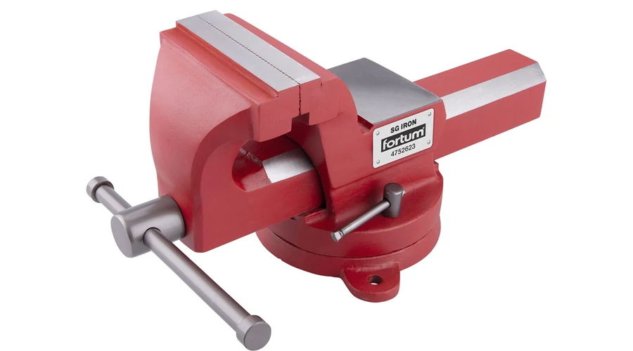 Ez a professzionális, nagy szorítóerejű forgatható satu, SG acélötvözetből készült: Ami egy magasabb ötvözetű acél a szokásosnál. A pofák forgása könnyű és egyenletes. HRC 50-54 keménységű pofákkal van felszerelve, ami nagy szilárdságot és tartósságot biztosít. Ideális eszköz különféle műhelyfeladatokhoz, minden napi munkára.