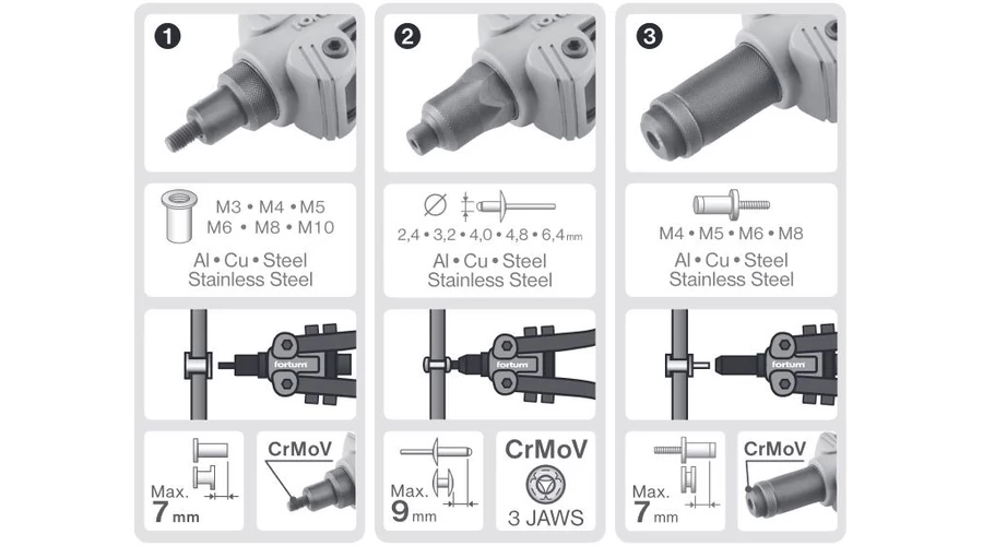 3-az1-ben funkció: szegecsanya húzó + szegecscsavar húzó + popszegecs húzó fogó is egy termékben!