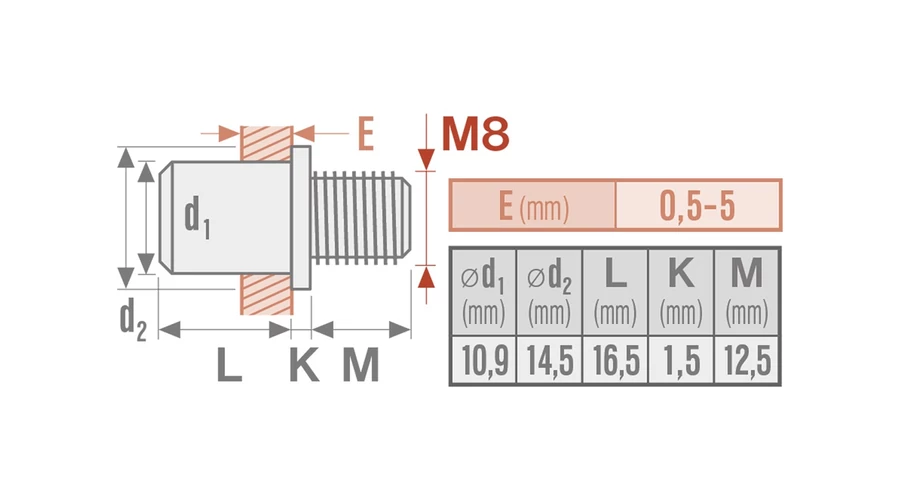 Fortum szegecscsavar klt. 25 db, M8, horganyzott acél, FORTUM (4770677)