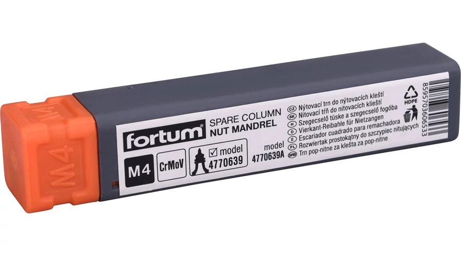 Fortum szegecscsavar vezető és húzószár, M4, a 4770639 fogóhoz, CrVMo FORTUM (4770639A)