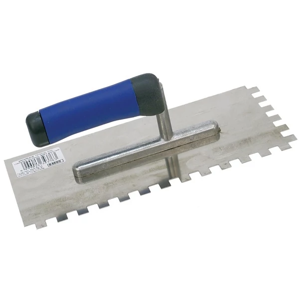 Kiváló rozsdamentes (inox) acélból készült lap. A glettelő négyszög fogazású. Puha gumi borítású fogóval rendelkezik, ami a folyamatos munkánál nagy előnyt jelent. Falfelületek, járófelületek lapokkal való burkolásakor csempéző glettvasat használjunk. A bekevert ragasztót egyenletes vastagságban, fogazott glettvassal kell felhordani a felületre, majd a végén a fogazott felével végighúzzuk a ragasztón.