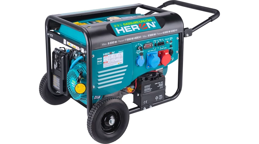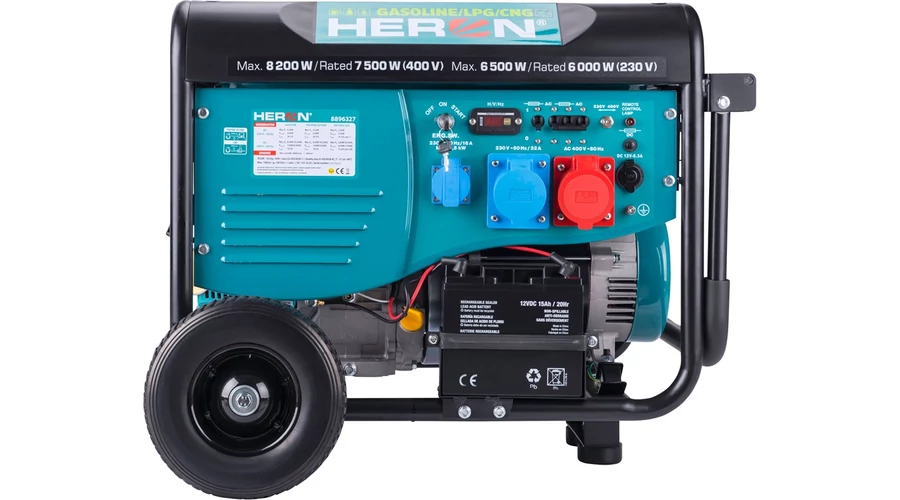 Szállított tartozékok: 230 V-os és 400 V-os dugvillák; DC kábel; gyertyakulcs; LPG reduktor; motorolaj; használati útmutató