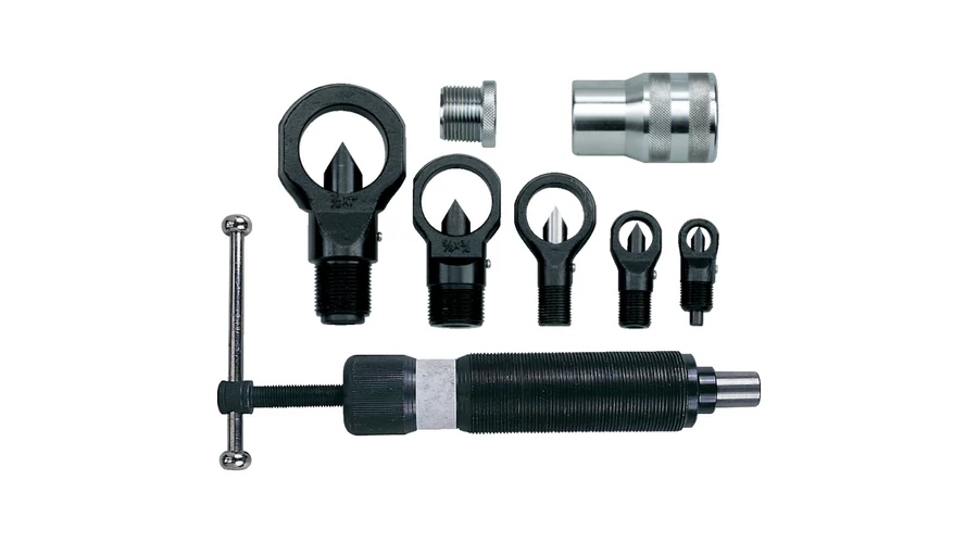 1x hidraulikus dugattyú, 1x anyavágó 10 mm átmérőhöz, 1x anyavágó 13 mm átmérőhöz, 1x anyavágó 16 mm átmérőhöz, 1x anyavágó 19 mm átmérőhöz, 1x anyavágó 25 mm átmérőhöz, 1x menetes csatlakozó hüvely, 1 x olaj palack.