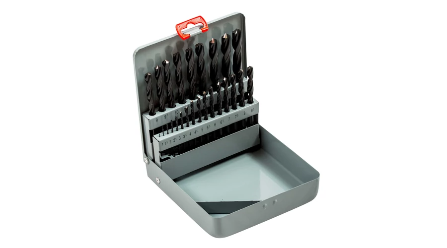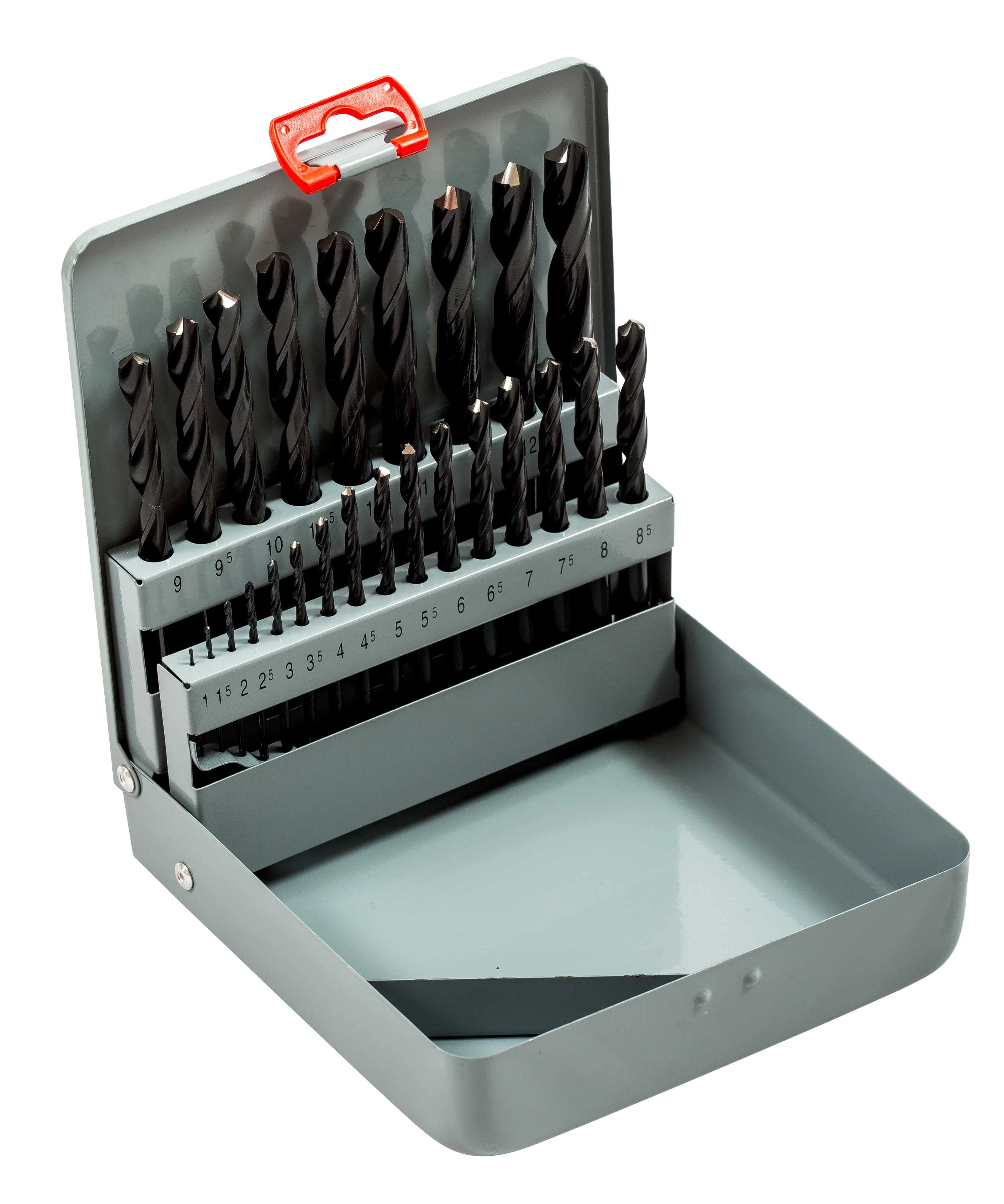 Contains 25 drills from 1.0 to 13.0 mm x 0.5 mm in a metal case