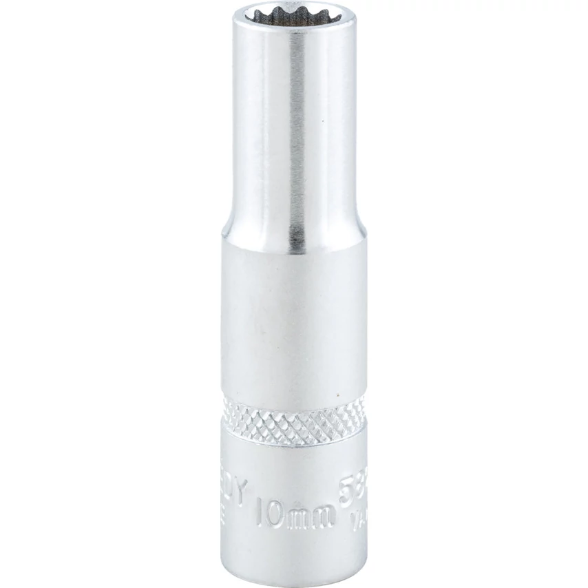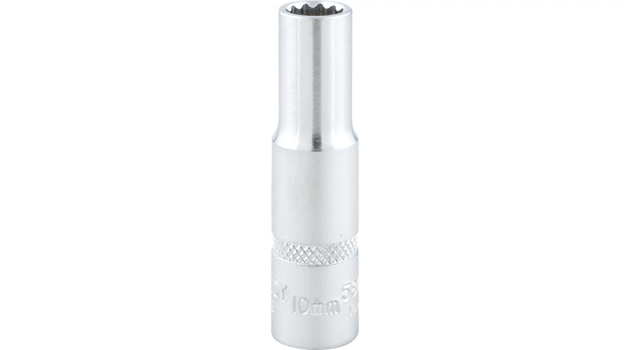 12 szögű kivitel amely nagyobb nyomatékot eredményez Krómozott polírozott króm-vanádium acél Belül letört élekkel a csavarfejekre való gyors ráfogás érdekében Bels négyszög minden oldala horonnyal