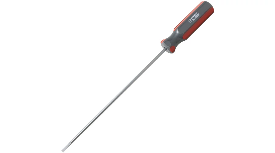 Hagyományos hornyolt markolat Selyemfényű edzett és köszörült króm ötvözetb l készült penge Ez a csavarhúzó típus nyújtja a legszélesebb választékot Olaj- sav- és ütésálló műanyag markolat Párhuzamos élű Az egyenes hornyú csavarok a legszélesebb körben használt rögzít elemek A csavarok biztos meghajtásához fontos hogy a csavarhúzó szélessége megegyezzen a csavarfej szélességével Így elkerülhet a csavarfejek eltorzítása és a csavarhúzó lecsúszása a fejr l DIN ISO 2380