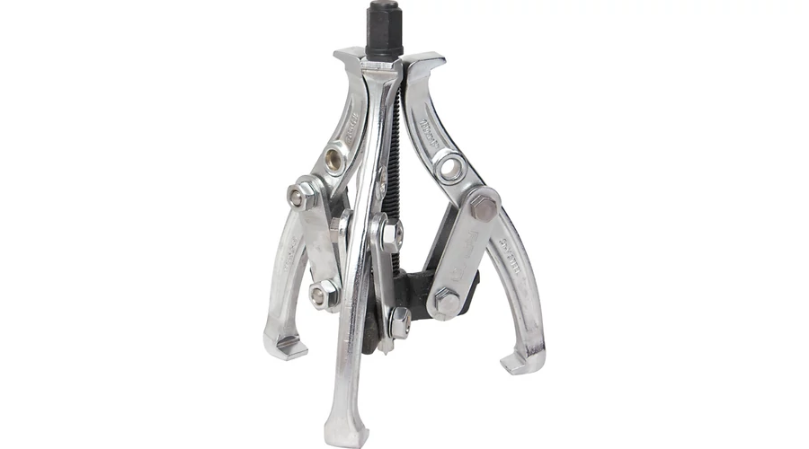 3 karos ipari lehúzók megfordítható kétvégû állítható Ipari lehúzók megfordítható kétvégû állítható fogaskerekek csapágygyûrûk csapágyak görgõk és lánckerekek hajtótengelyekrõl való eltávolítására 75 100 150 és 200mm-es befogással Kétvégû állítható megfordítható lehúzókarok belsõ és külsõ alkalmazásra Lehúzó választás Lehetõség szerint inkább háromkaros lehúzót használjunk jobb teherelosztást biztosít így az alkatrész eltávolítása könnyebb és biztonságosabb Határozzuk meg hogy az adott alkatrész eltávolításához milyen befogás az alkatrész átmérõje és milyen kinyúlás az alkatrész mélysége szükséges