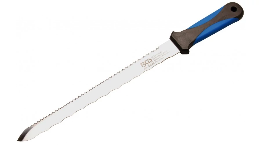 a penge rozsdamentes acélból készül kettős recézéssel a következő munkák számára: fűrészelés a merev és kemény szigetelőn a formázott oldalon