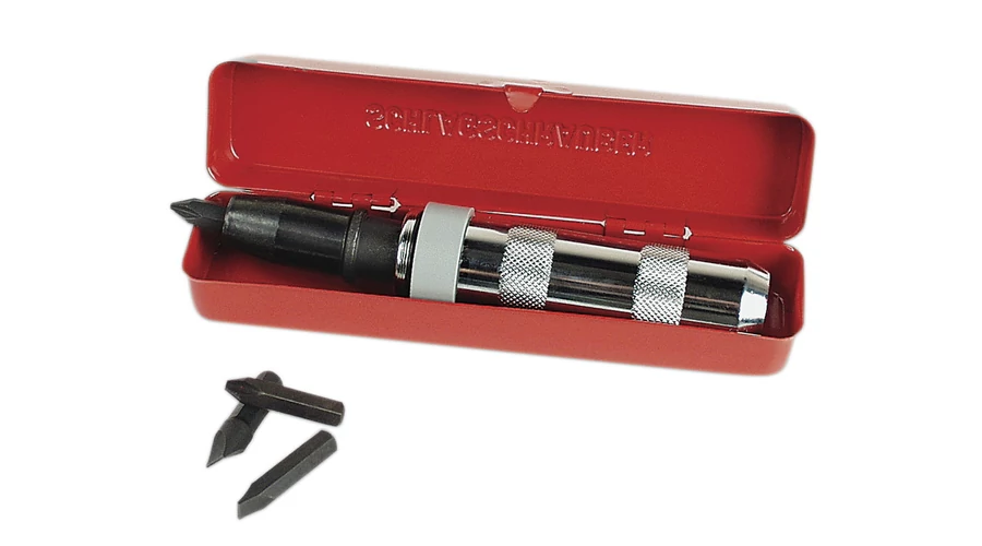 JELLEMZŐK: TÜV/GS certifikációval. Minőségi termék a 80 éves legendás német MANNESMANN WERKEZEUGE-től Ipari minőségű 4db-os ütvecsavarhúzó készlet fém dobozban beszorult, nehezen mozduló csavarokhoz. 1/2"-os 12,5mm dugókulcshoz is ; +4 db bit ( PH 2, PH 3, Flach 8, Flach 10), in Metallkassette