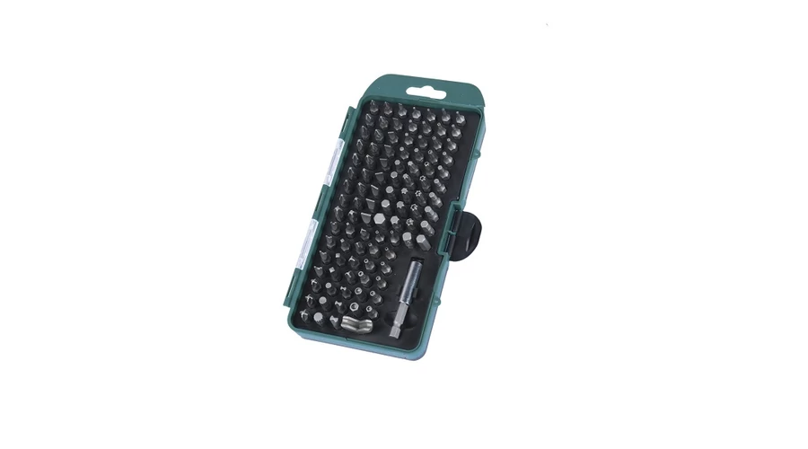 JELLEMZŐK: 10 év garancia TÜV/GS certifikációval. Minőségi termék a 80 éves legendás német MANNESMANN WERKEZEUGE "Green Line" családból . 100 darabos 25mm hagyományos és speciális betétek a legújabb készülékek javításához is 16 eltérő szabvány szerinti fej, a legkisebbtől a legnagyobb méretig minden szokásos akkus stb. csavarhúzóhoz alkalmazható mágneses és mechanikus rögzítésű toldók, átalakítók Bits 25mm o Chrom-Vanadium Stahl 1/16" o 5/64" o 3/32" o 7/64" o 1/8" 9/64" o 5/32" o 3/16" o 7/32" o 1/4" 5/64 o 3/32 o 7/64 o 1/8 o 9/64 o 5/32 1,5 o 2 o 2,5 o 3 o 4 o 5 o 5,5 o 6 o 8 mm 2 o 2,5 o 3 o 4 o 5 o 6 mm T8h o T10h o T15h o T20h o T25 h o T27h o T30h o T35h o T40h T8oT10oT15oT20oT25oT27oT30oT40oT45 3 o 4 o 4,5 o 5 o 5,5 o 6 o 6,5 o 7 o 8 mm 4 o 6 o 8 o 10 mm 1 o 2 o 3 o 4 6 o 8 o 10 c1 o c2 o c3 5 o 6 o 8 Ph0 o 2 x Ph1 o 5 x Ph2 o Ph3 Pz0 o 2 x Pz1 o 5 x Pz2 o Pz 3 S0 o S1 o S2 o S3 1 adapter 6-kant auf 4-kant 1/4" - (6,3 mm) 1 magnetischer Bithalter 1 hakenschrauber