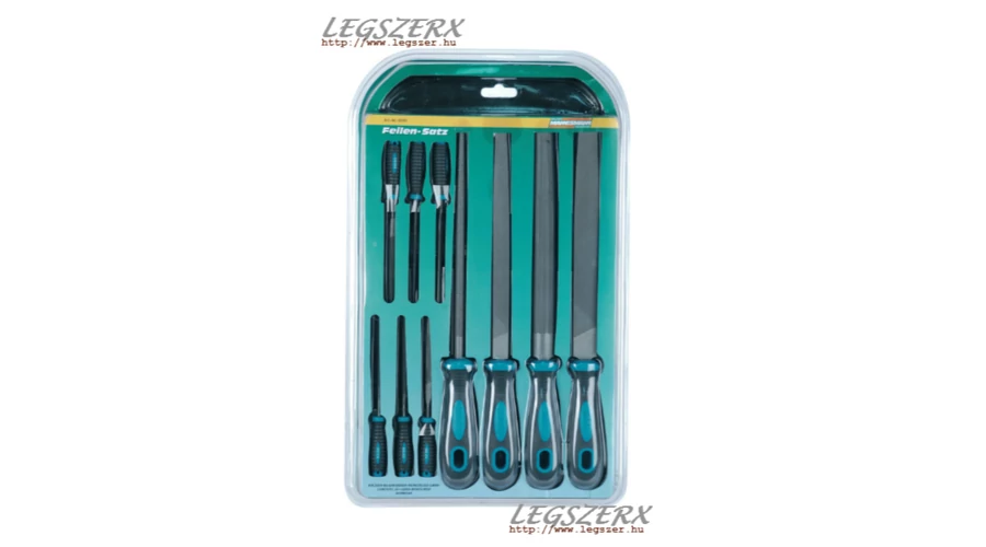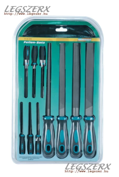 10db-os reszelő, tűreszelő készlet. 4db 200mm-es kézi reszelő, lapos, háromszög, félgömb, gömbölyű. 6db 90mm-es tű reszelő.