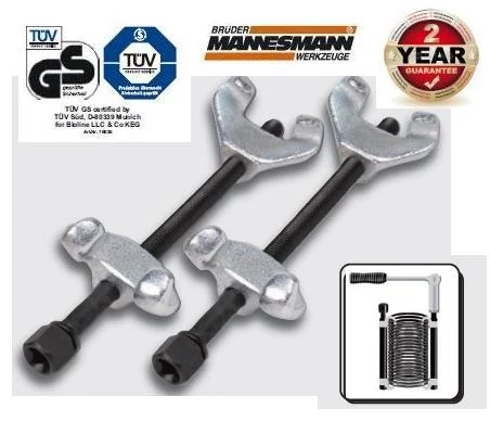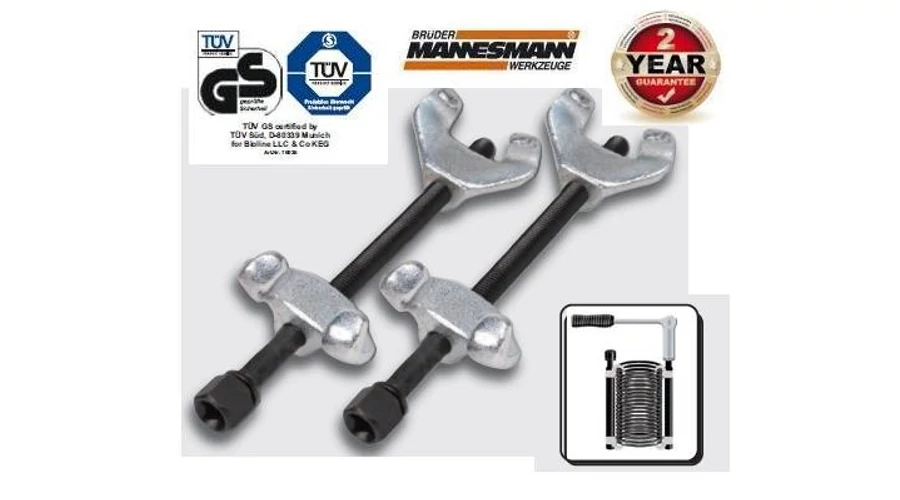 JELLEMZŐK: 2 év garancia TÜV/GS certifikációval Minőségi termék a 80 éves legendás német MANNESMANN WERKEZEUGE-től. Federspanner - Set, 2-tlg. Í zum Montieren und Demontieren von sämtlichen Schraubenfedern am Auto Í Spannbereich 300 mm