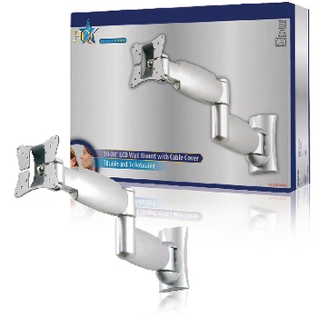 Modern LCD fali állvány 23 inch-es méretig. Forgatható és dönthető, 3 artikulációs ponttal rendelkezik. Számos pozíció beállítható. Amikor a tv nem üzemel, különösen közel tolható a falhoz. A kábelek helyes elrendezéséről kábelvezető rendszer gondoskodik. VESA adaptert tartalmaz.