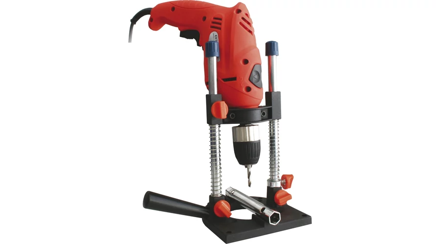 JELLEMZŐK: 1 év garancia EXTOL CRAFT gyártmányú szabványos standard 43 mm-es befogó méretű hagyományos elektromos kézi fúróépekhez. Az állvány tartalma: két ütköző, oldalfogantyú, prizmaágy csövek és kerek tárgyak fúrásához. Megjegyzés: Az asztalban prizma is található, tehát a kerek anyagok fúrása sem gond többé. A vezetőrudak kitolásával szög alatt is lehet fúrni, és könnyen meg lehet találni a deszka közepét csapoláshoz...stb. Pontosan és derékszögben fúrhatunk meg bármit, vagy fűrészelhetünk lyukat bármilyen állásban, falon, fej felett, ferde felületeken, rúdanyagba, lécbe vagy profillécekbe. Függőleges, vízszintes vagy 45° fokban ferde fúráshoz 2 skálabeosztással bíró vezetőoszlop; fokozatmentesen beállítható fúrásmélység ütköző; párhuzamos felütköztetés egyvonalba eső sorozat-fúráshoz; kiegészítő fogantyú a hajszálpontos megfúráshoz és a fúrás közben az elcsúszás megakadályozására; az alaplemezben négy felerősítő csavarlyuk, végleges fúróállványként való használathoz. Magasság: 200mm Munkaút: -125mm