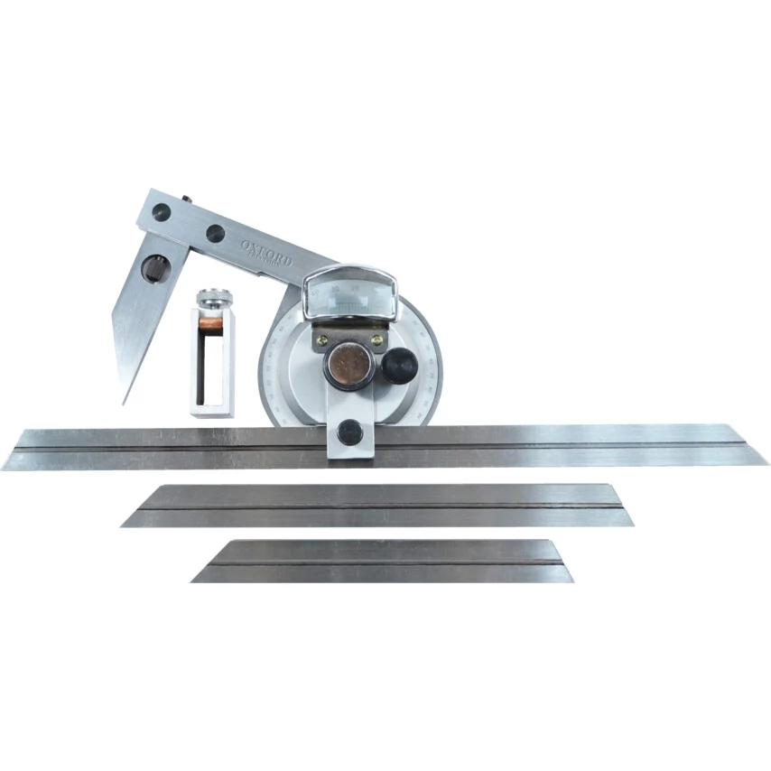 Gépek öntőformák és tokmányok pontos szögmérésére Polírozott és edzett rozsdamentes acélból készült nagyítóüveggel a nóniuszskála könnyebb leolvasásához Tartománya 4x 90 és pontossága 1 2 vagy 5 szögperc A készlet tartalma szögmérő fej 150mm 6 200mm 8 és 300mm 12 sima vonalzók magasságmérő és hegyesszög tartozékok