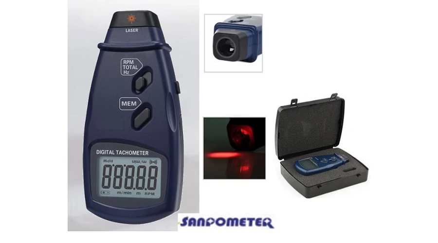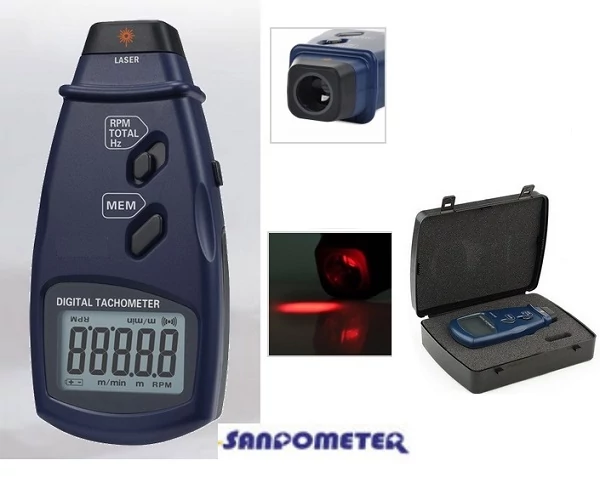 JELLEMZŐK: 2 ÉV GARANCIA Fotóelektronikus lézeres kézi fordulatszámmérő 1) Kapcsolat tach tartomány: 2.5 - 99999 RPM 2.) Felbontás: 0,1 rpm / 1 rpm 3.) MAX, MIN, az utolsó érték memória, képes tárolni 96 s adatokat 4) 5 számjegy 18mm (0.6 ") Sárga háttérvilágítású LCD 5) Pontosság: ± (0,05% +1 digit) 6) Mintavételi idő: 0,5 mp (több 120RPM) 7) A hatótávolság kiválasztása: Automatikus Kezdve 8) Memória: max. érték, min. érték, utolsó érték 9) tárolására alkalmas 96s adatok 10) időalap: 6MHz kvarckristály 11) érzékelési távolsága: 50 ~ 500mm 12) Fogyasztás: kb 55mA 13.) Test Range: 2.5 ~ 99999 RPM 14.) Felbontás: 0.1RPM (2.5 ~ 999.9RPM) / 1RPM (több mint 1000 RPM) 15.) Összes Test Range: 1 ~ 99999 16) tápellátás: 3 x 1,5 V AA elem (nem tartozék) 17) Méret: 15,5 cm x 7cm x 3.2cm