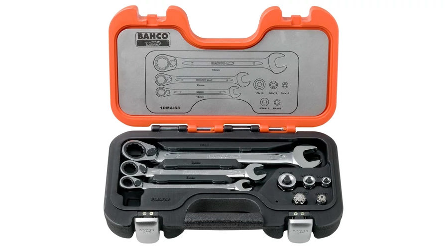 Racsniskulcs adapter és racsnis csillag-villáskulcs készlet.