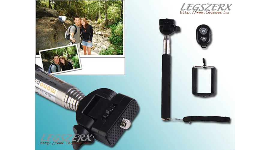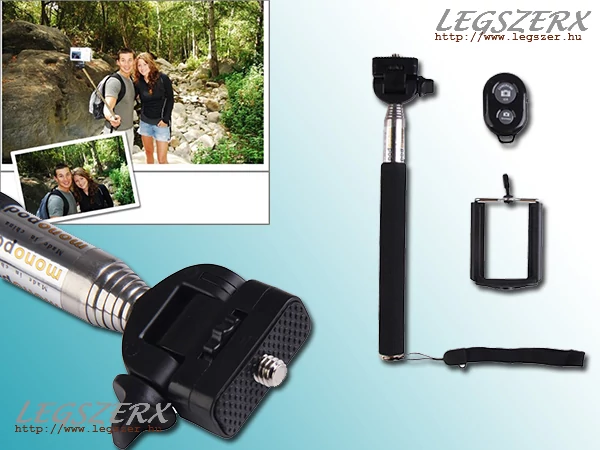 Jellemzők: Selfie foto álvány fényképezőgéphez vagy mobiltelefonhoz készletben, Bluetooth távkioldóval. Ezzel az eszközzel senki nem marad le többé a csoportképekről. Használhatja bárhol. Kis méretű (összecsukható) és leszereelhető a telefon foglalat. Az adapter 180°-ban elforgatható és dönthető. Csúszásmentes puha markolat a kényelem és a biztos tartás érdekében. A legtöbb fényképezőgéphez és mobiltelefonhoz alkalmas. A telefon tartó kengyel 5.0-8.5cm szélességig kompatibilis. A távkioldót CR2034 elemmel szállítjuk. Maximális hossz: 102 cm A távkioldó maximális hatóköre: 10m Bluetooth technológia: 3.0 (2,4GHz) Android és IOS támogatással A szett tartalmaz: 1 db teleszkópos monopod 1db univerzális telefon tartó kengyel 1 db Bluetooth távkioldó color="#FF0000" size="3"> (A képen látható kamera nem része a csomagnak!)