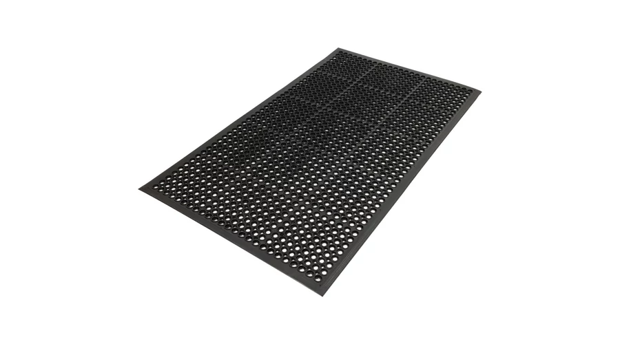 A kemény talajon hosszú ideig tartó egyhelyben történő állás fáradtság elleni szőnyegek nélkül fájdalmat és kényelmetlenséget okoz a lábakban háton A fáradtság csökkenti a koncentrálás és ebből kifolyólag a termelékenységet A fáradtság elleni szőnyeg növeli a munkások kényelmét és termelékenységét azáltal hogy csökkenti a stresszt fáradtságot és fájdalmat amelyet a kemény talajon történő állás okozna A fáradtság elleni szőnyegek munkahelyen történő bevezetésével kedvezőbb környezet alakítható ki ami viszont elősegíti a koncentrálást és növeli a termelékenységet Munkaszőnyeg Kopásálló gumiból Megemelt körmintás feület kiváló tapadási tulajdonságokkal - használható nedves környezetben Erősített élekkel Megfelel a EN13552 Category R10 előírásainak Szín fekete Vastagság 14mm