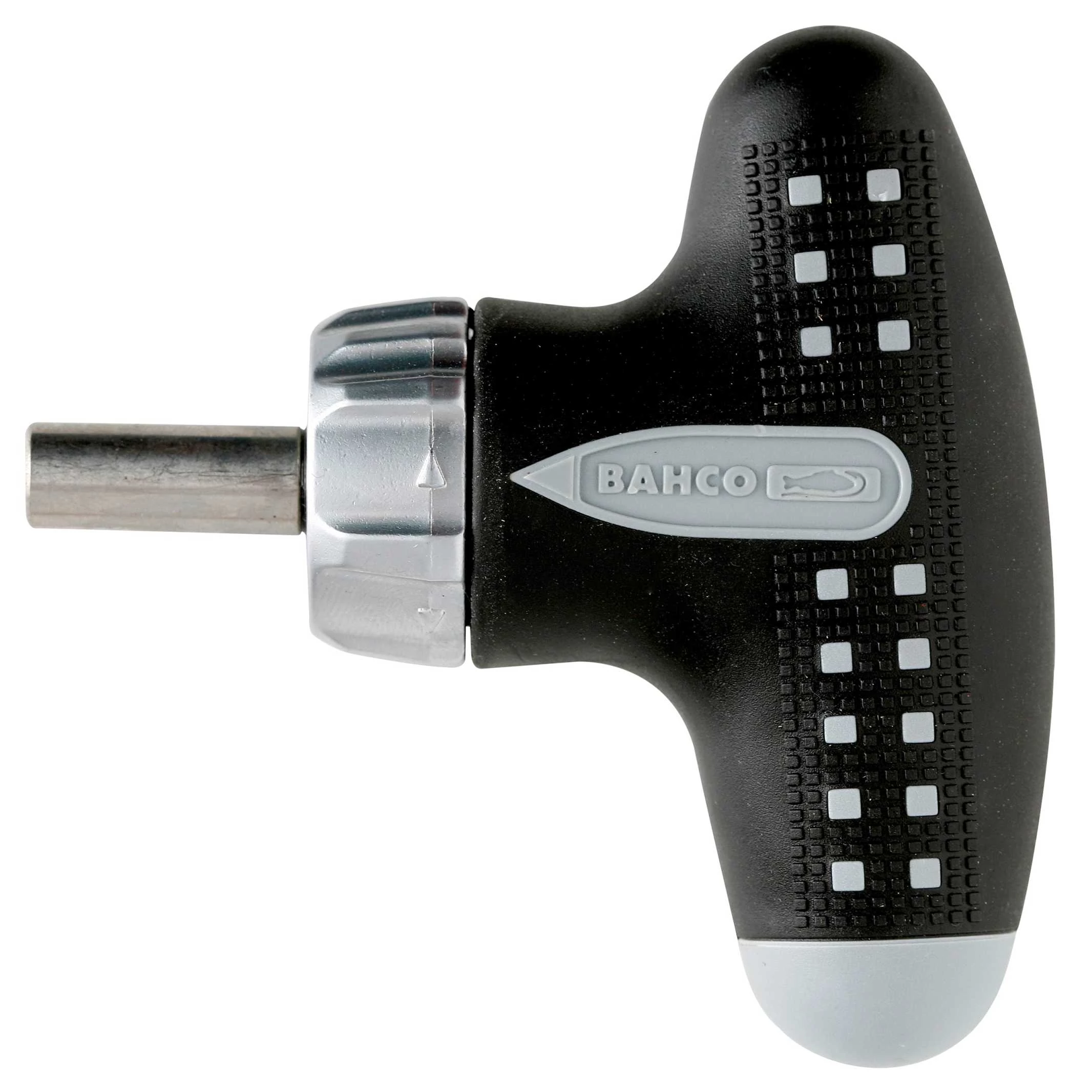 Stubby ratcheting 1/4" bit holder screwdriver with T-handle