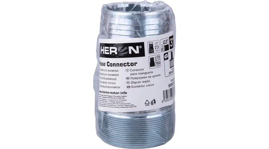 G3 menet, tömlő felőli vég: O76×71mm, teljes méret: O88×147mm, menet hossza: 33 mm, tömeg: 780 g, cink bevonatú acél