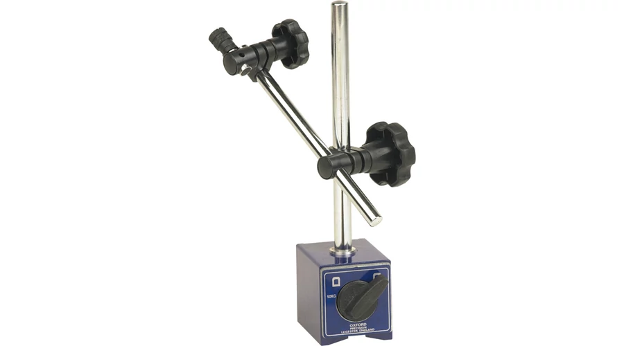 Kapcsolómágnes két mágneses felülettel és prizmás talppal Univerzális szorító Szerelvény 1 4 belső átmérőjű fül szár csap átmérő 1 8 1 4 Állványtalp méretei 60 x 65 x 55mm Oszlop magasság x átmérő 175 x 12mm Keresztrúd hossz x átmérő 160 x 10 0mm Mágneses húzóerő 50kg