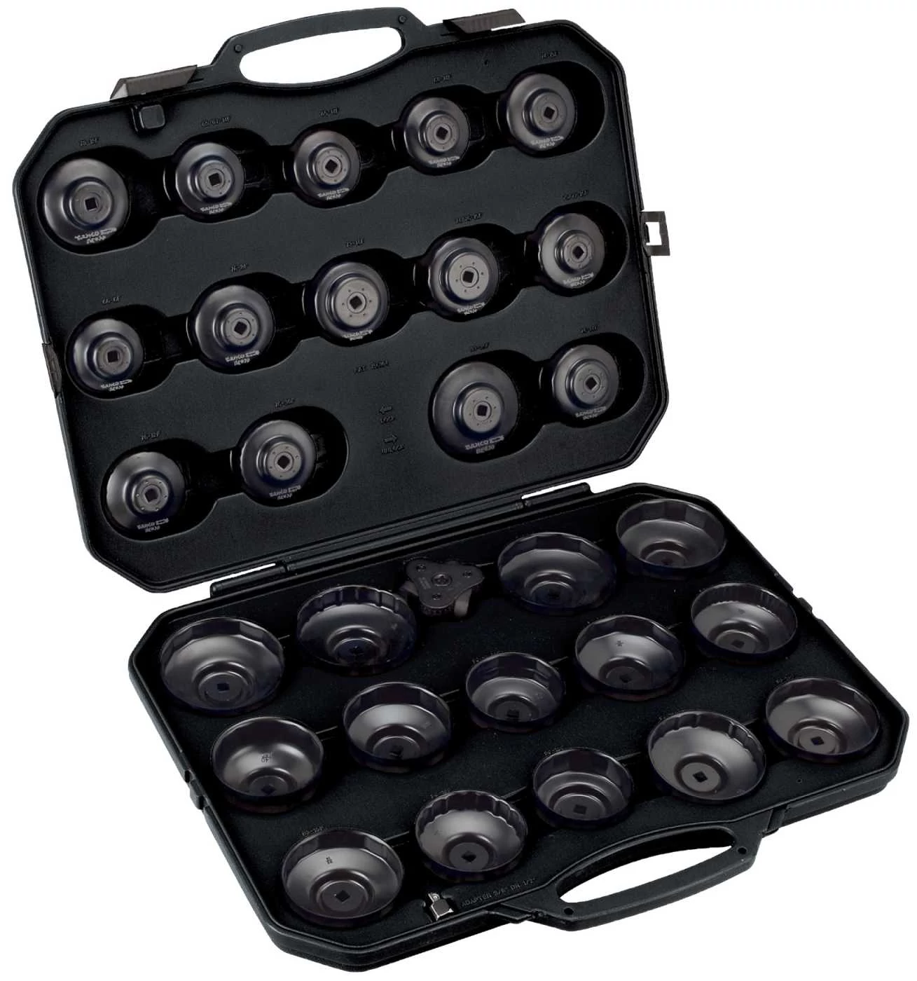 Containing 28 oil filter cups, 1 3/8” adaptor and 1 three flat legged oil filter wrench (in total 30 pcs)