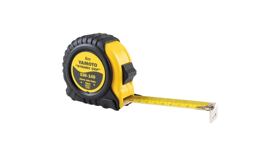 Dynamic Grip Texturált jó fogású és ütésálló gumírozott ház A szalag visszafutását zárórugó segíti Szegecselt fém akasztóhorog Acél övakasztó és csuklószíj A kihúzott szalag a reteszgombbal a kívánt helyzetben rögzíthet Er s korrózióálló szalag és akasztóhorog ipari használatra Az önbeálló horog biztosítja a bels és küls mérések pontosságát Az 5 m-es és annál hosszabb mér szalagok akasztóhorgait négy szegecs rögzíti a 3 m 10 mér szalagét kett A metrikus inch-es mér szalagok skála beosztása 1 32 1 16 illetve mm A csak metrikus mér szalagok mm és cm osztásúak