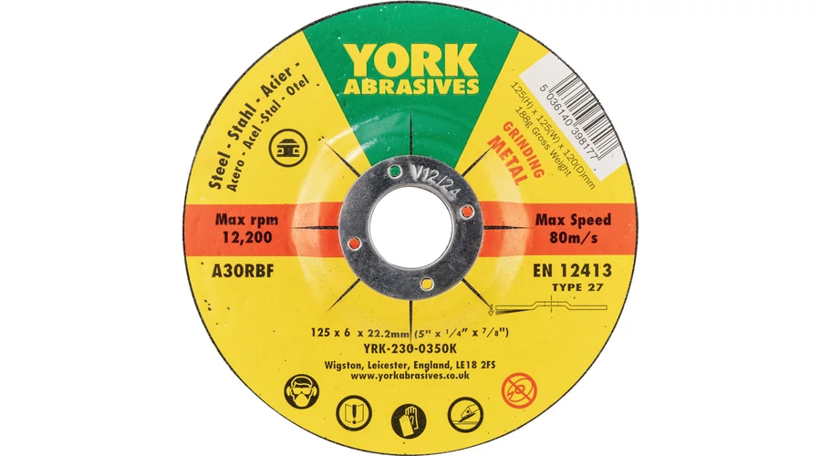 Grade A30 - Fémeken való általános célú használatra Grade C24 - Kőzeten és színesfémen való használatra Grade R30 - Rozsdamentes acélon való használatra Grade X24 - Speciális öntöttvason való használatra 27 típusú süllyesztett középpontú csiszolókorongok A gépkezelő biztonságának és az optimális teljesítmény szem előtt tartásával készültek Minden hordozható sarokcsiszolóval használhatók Szabadkézi vagy nedves csiszoláshoz nem használhatók Az optimális használati szög 25-35