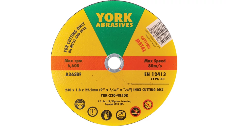 41 típusú lapos szálerősített vágókorongok Lapos szálerősített vágókorongok hordozható sarokcsiszolókkal való használatra A 180 mm-es és a 230 mm-es korongok körfűrészekkel is használhatók Nedves vágáshoz nem használhatók Rozsdamentes acélhoz vas- klór- és kénmentes EN 12413